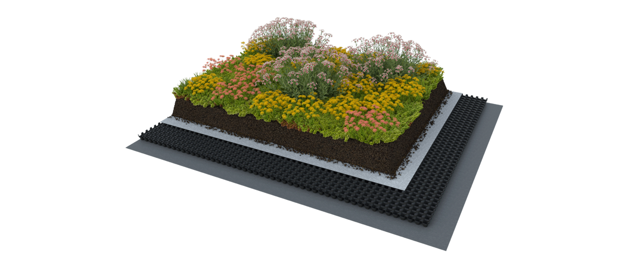 Tento typ střechy lze zařadit mezi polointenzivní zelené střechy, které vyžadují náročnější údržbu, zejména z hlediska péče o rozmanitější a náročnější vegetaci. Největším přínosem tohoto řešení je jeho estetická hodnota a podpora biodiverzity. Substrátová vrstva se obvykle pohybuje v rozmezí 12 až 30 cm, přičemž zatížení činí přibližně 180 až 450 kg na m².