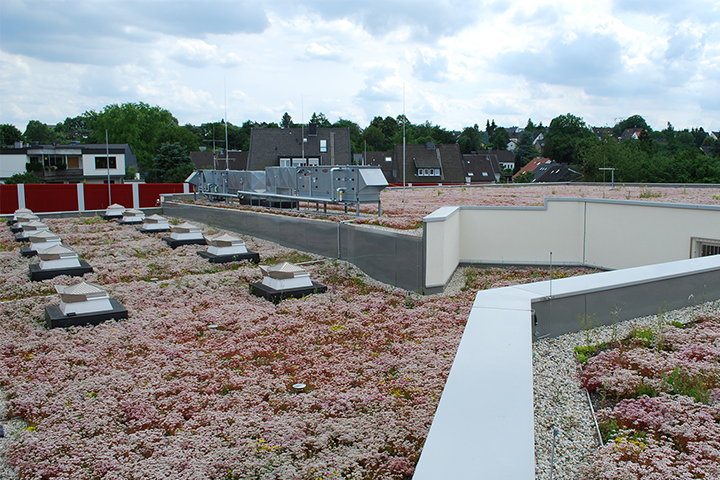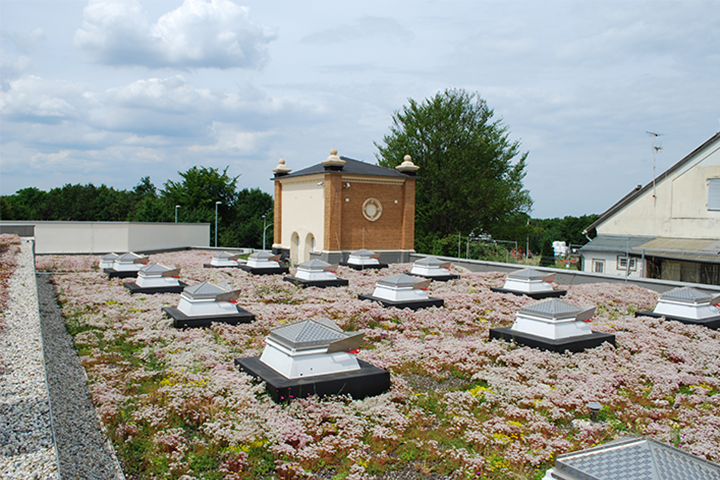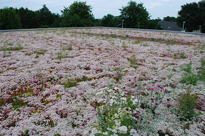 Zelená střecha meander je chytré řešení pro rozsáhlé zelené střechy se zpožděním odtokem. Díky speciálnímu drenážnímu prvku prodlužuje cestu dešťové vody a snižuje špičkovou hodnotu odtoku Cs=0,01* při 2% sklonu (testováno podle pokynů FLL). Ekonomické a ploché provedení je ideální pro velké průmyslové střechy, kde jsou kladeny nároky na regulaci odtoku vody do kanalizační soustavy. Doporučená vegetace je formou výsadby rozchodníků, která je nejméně náročná na údržbu, což dále zvyšuje efektivitu celého systému.