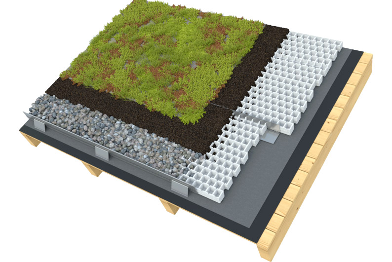 Ochrana hydroizolace – zelená střecha prodlužuje životnost střešní krytiny tím, že ji chrání před UV zářením a extrémními teplotami.